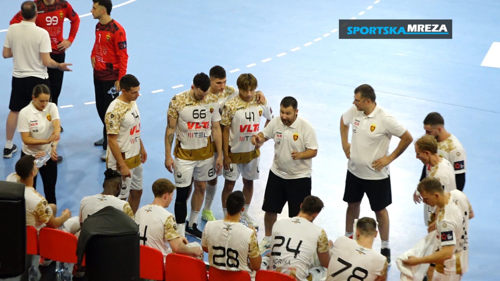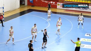 Натпреварот започна изедначено, со погодоци на двете страни, па така, некаде на средината на првото полувреме имавме резултат 7:7. Од 18.минута па до пред крајот на полувремето, Вардар одржуваше два гола разлика, а во 26. минута за првпат во мечот стигна и до три разлика- 13:10.