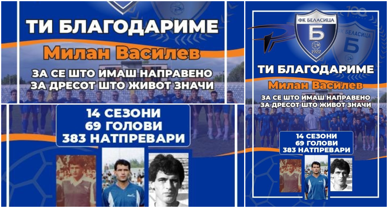 Фудбалскиот клуб Беласица од Струмица во недела ќе организира свеченост посветена на еден од своите најголеми играчи – Милан Василев. Настанот ќе се одржи на стадионот „Благој Истатов“ непосредно пред натпреварот од 7. коло на Втората лига против Шкендија Арачиново, кој започнува во 18:30 часот под рефлектори.