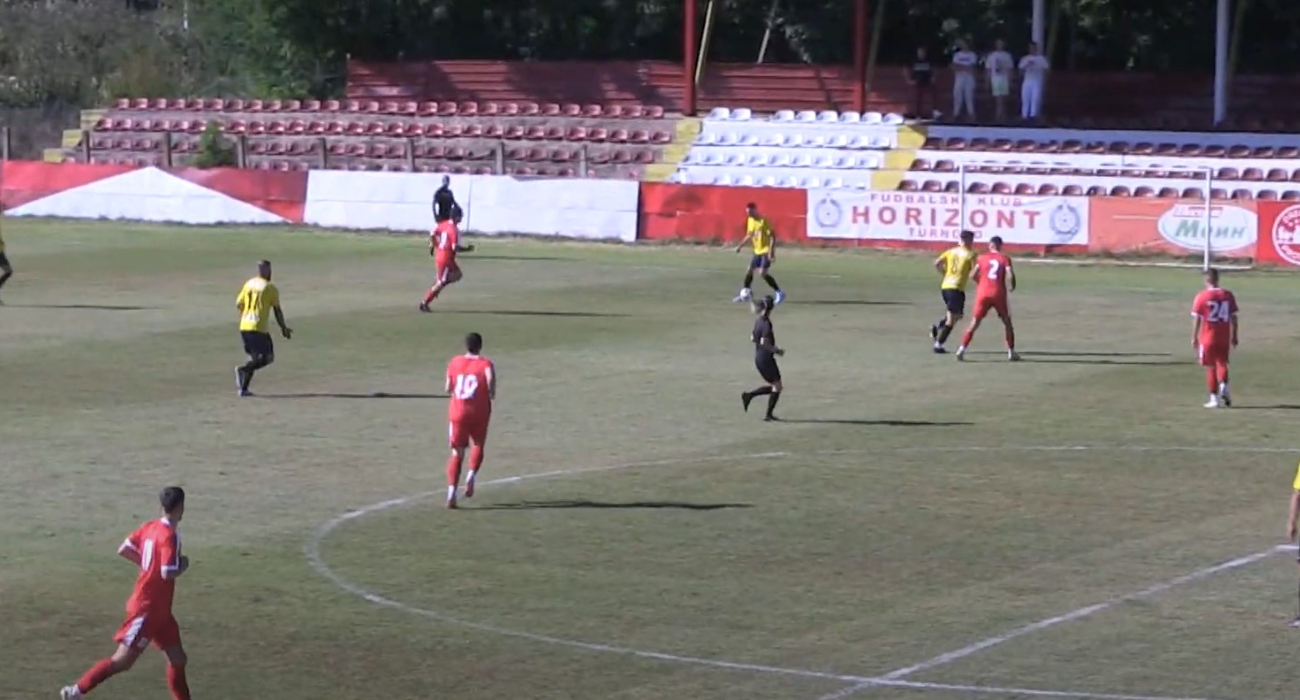 Дерби меч на кој видовме шест погодоци, а на два конкуренти за влез во Втора лига. Димче Јовов постигна гол во 6. минута за отварање на резултатот, а во 12. минута Филип Зајков погоди за 1:1. Но, по само две минути игра искусниот Сашко Пандев постигна гол за 2:1 и нова предност на Хоризонт Турново.