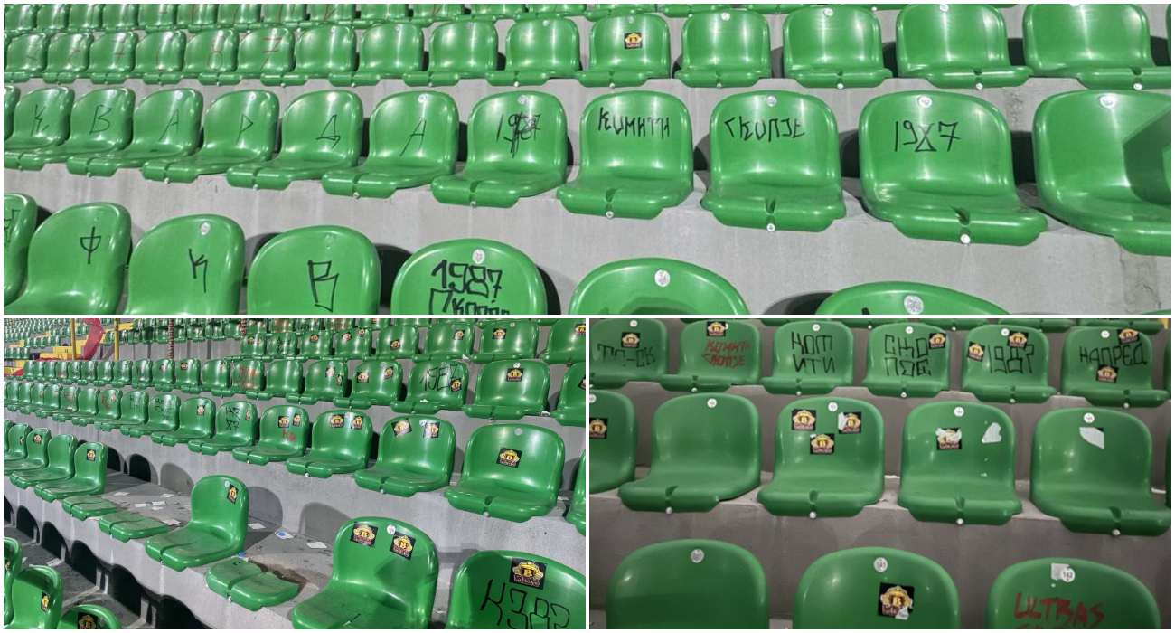 Битолчани на своите официјални канали објавија фотографии од новореновираната јужна трибина, каде што беа сместени навивачите на Вардар – „Комити“. На нив, како што наведуваат од клубот, може да се види материјална штета: налепници и потписи на седиштата, скршени и запалени столчиња.