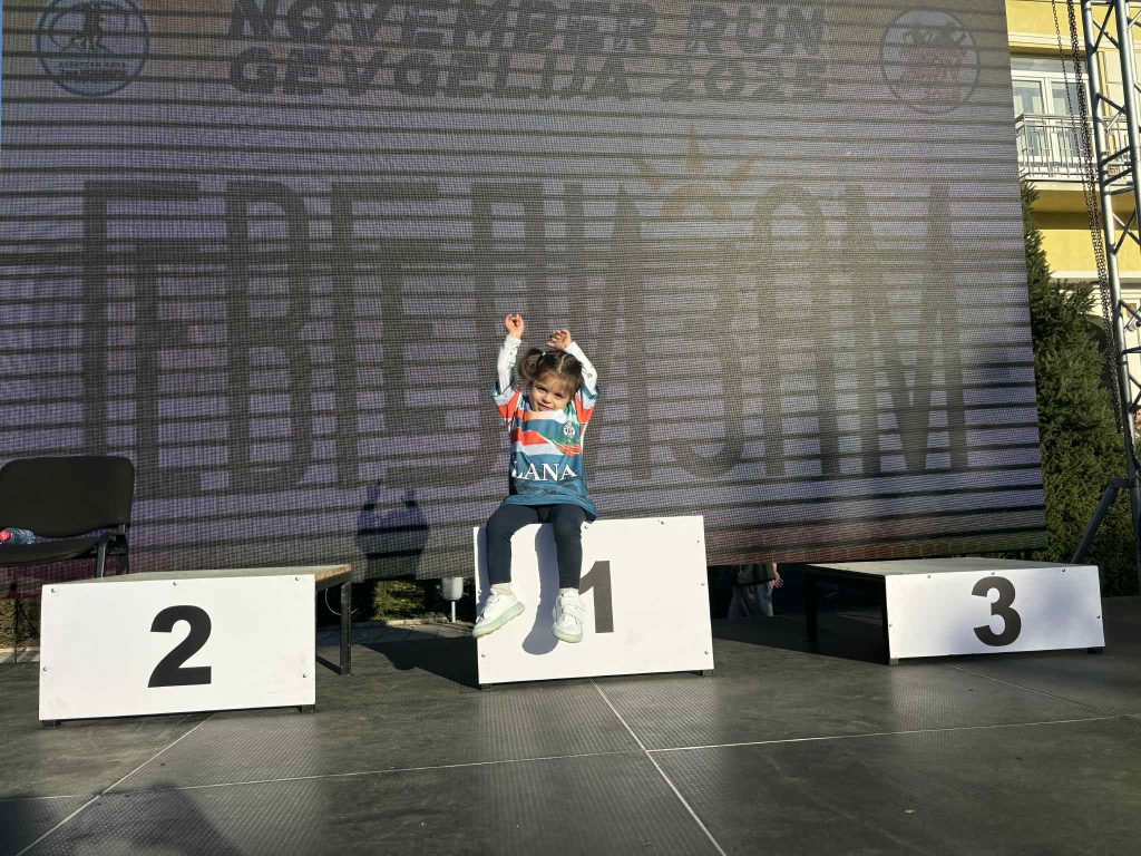 На овогодинешното издание на „November Run“ во Гевгелија, најмладите учесници повторно ја воодушевија публиката. Меѓу нив беше и малата Лана Танова – само 2 години и 2 месеци – која со својата мајка, наставничката по физичко образование Бојана Танова, учествуваше во инклузивната трка на 1 километар, како и во детската трка од иста должина.
