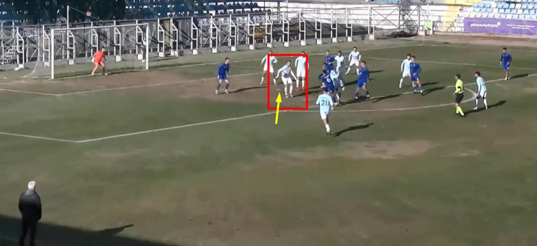 Течеше 23. минута кога по еден прекин топката дојде во шеснаесетникот и заврши во раката на Галевски, но и покрај тоа, судиската тројка на чело со Боби Величков не покажа на белата точка, иако играчите на Беласица простестираа.
