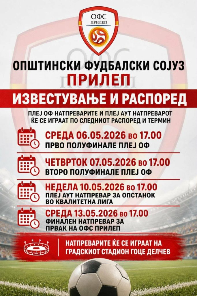 • Среда, 13.05.2026 (17:00) – Финален натпревар за првак на ОФС Прилеп