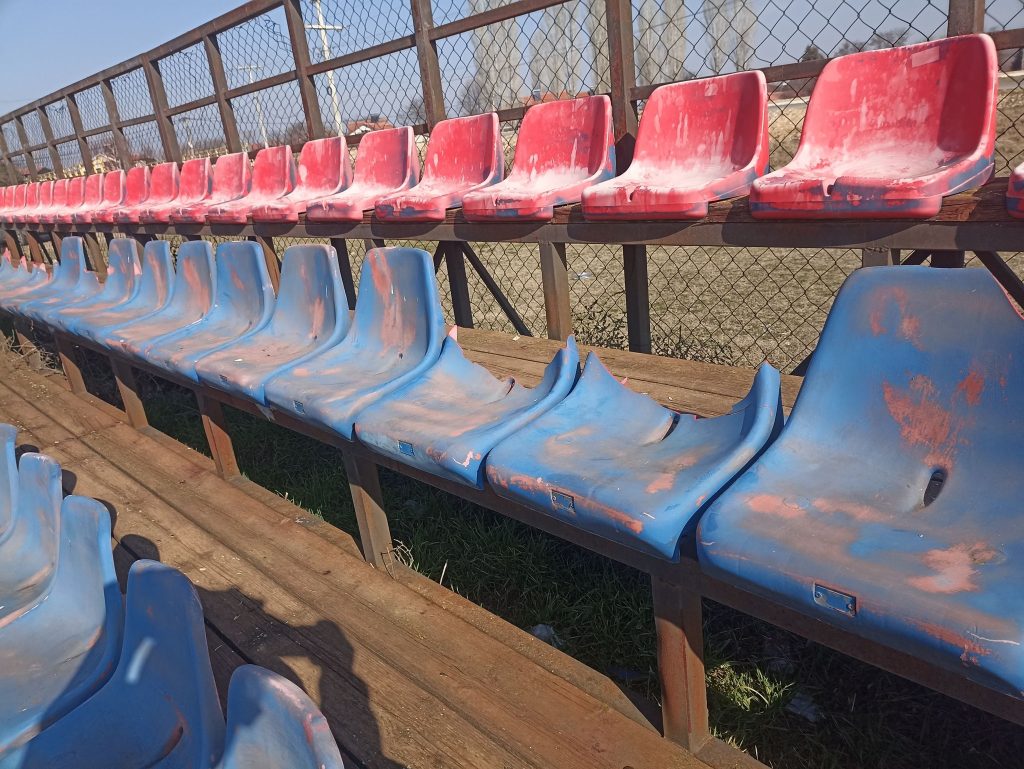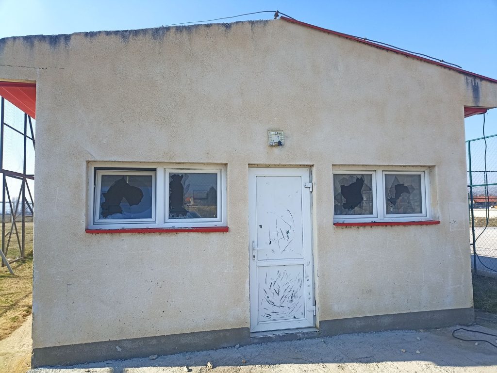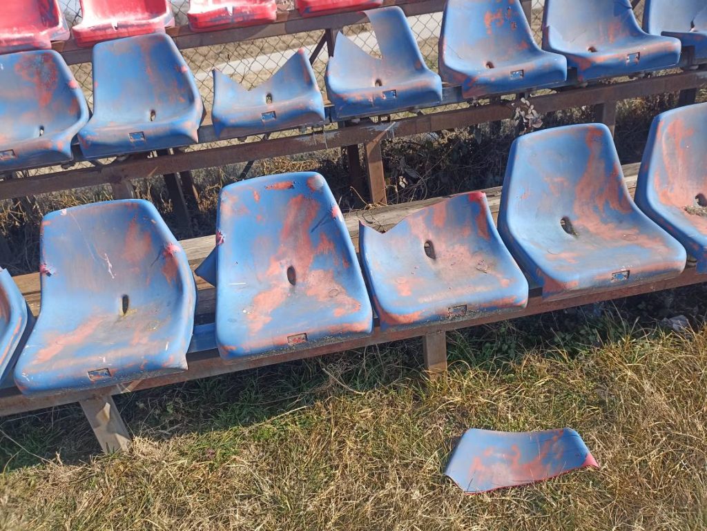 Искршени прозорите од соблекувалните, искршени столчињата на трибината, уништена ограда.